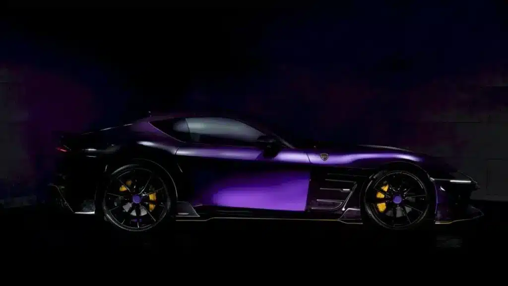 Want geef toe: een Ferrari 12Cilindri is al een droom. Maar eentje in paars, met koolstofvezel vleugels en gordels die eruitzien alsof ze uit Gotham City komen? Dat is pas écht een verhaal om op een feestje te vertellen.